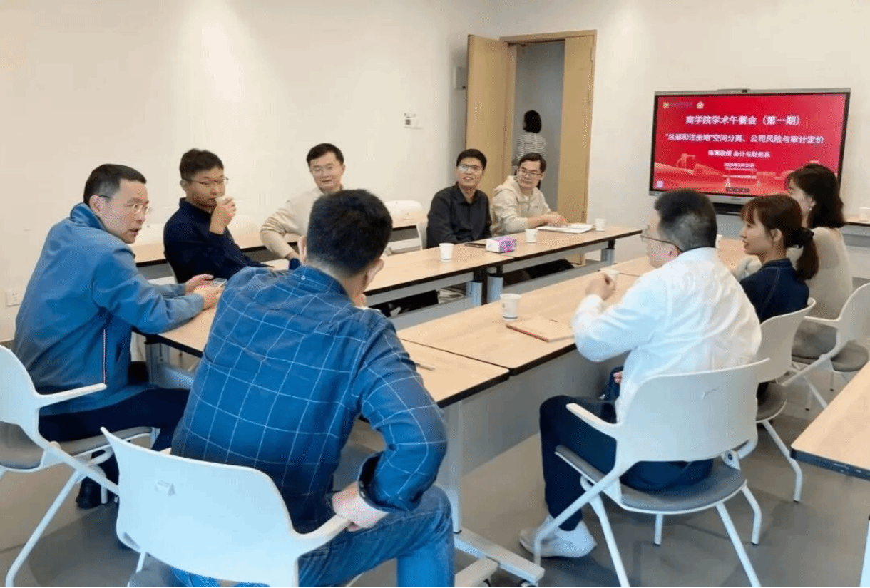 3月25日中午,商学院C333会议室内气氛热烈,由学院工会牵头组织的首期学术午餐会顺利举办。本次活动以“‘总部和注册地’空间分离、公司风险与审计定价”为主题,由会计与财务系陈菁教授主讲,吸引了20余名教师参与。学院工会通过搭建这一轻松开放的交流平台,不仅促进了教师间的学术思想碰撞,更为未来科研与育人工作的深度融合奠定了坚实基础。