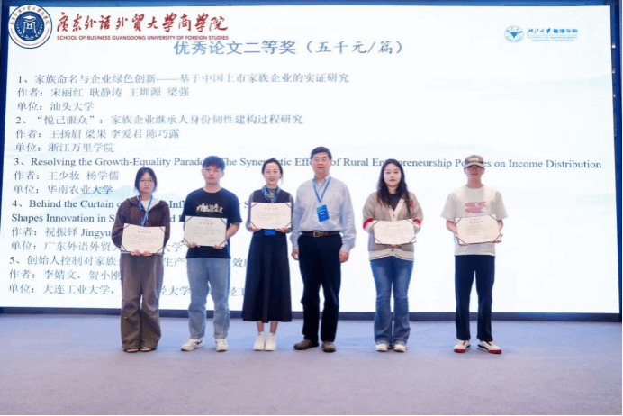 由宋丽红教授、梁强教授及商学院研究生耿静涛、王圳源共同完成的论文《家族命名与企业绿色创新——基于中国上市家族企业的实证研究》获优秀论文二等奖。