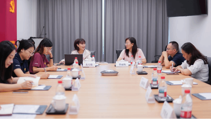 2025年11月10日上午,广东财经大学会计学院审计系系主任曹丽梅教授、财务管理系陈勇副主任、国际化交流合作办公室张建平主任等一行到商学院调研座谈。商学院副院长龙月娥教授、会计与财务系付玉梅老师、林翠梁老师、国际交流与合作办公室江佳玫老师、教务办林馨老师出席本次座谈会。座谈会由龙月娥副院长主持。