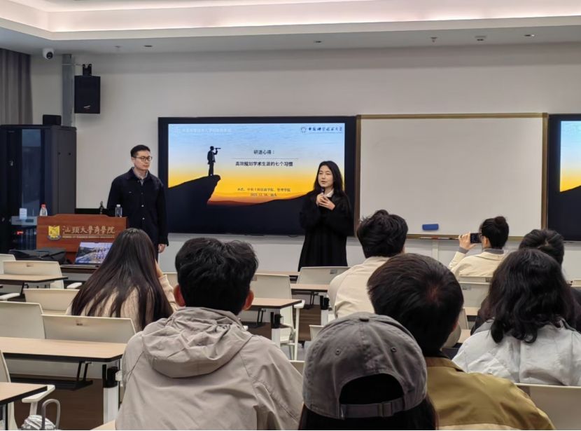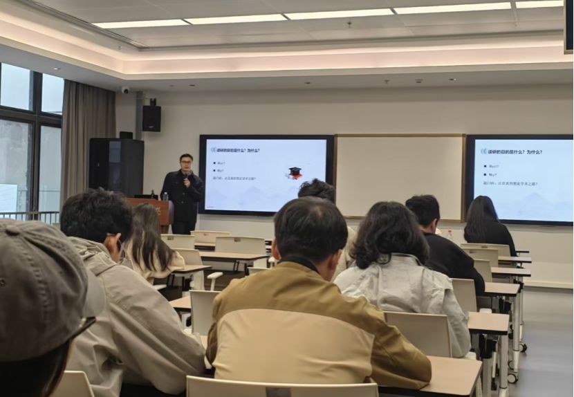 2025年12月16日上午,商学院管理与决策科学系学术讲座(第221期)暨研究生培养论坛NO.19在东海岸校区行政楼328会议室成功举办。本次讲座特邀中国科学技术大学孙浩特任副教授作为主讲嘉宾,做了题为《高效规划学术生涯的七个习惯》的学术分享。讲座由商学院徐婷老师主持,雷希、李梦琳等教师和二十余位学生参与交流。
