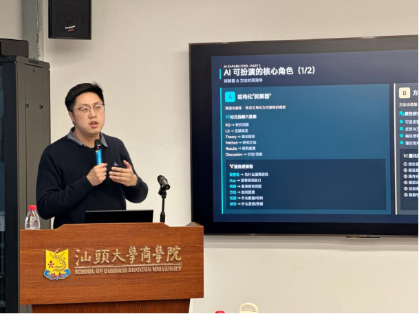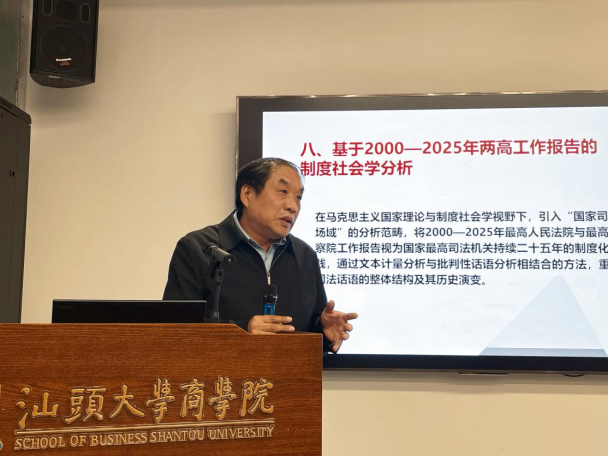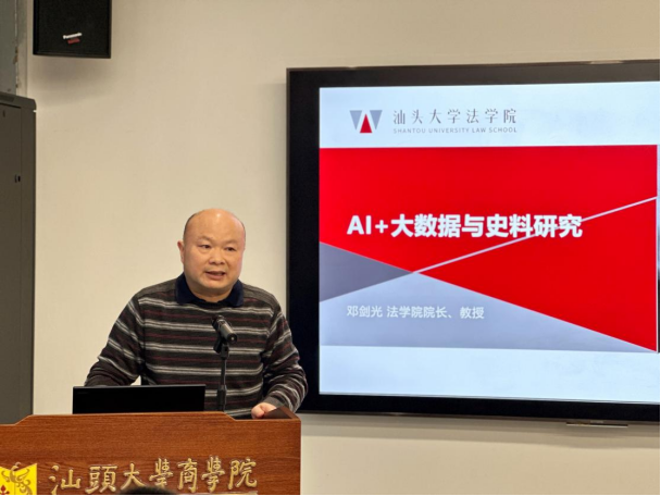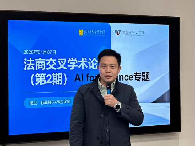 2026年1月7日下午,由汕头大学商学院与法学院联合举办的第2期“法商交叉学术论坛”在东海岸校区行政楼C328研讨室顺利举行。本期论坛以“AI for Science”为专题,旨在进一步推进法学与商学在研究方法层面的深度融合,持续搭建跨学科交流平台,为学术探索提供新视角与新路径。汕头大学党委常委、纪委书记冯兴雷、商学院院长梁强、法学院院长邓剑光出席活动,法商两院师生共计近百人到场参与交流。此次论坛由商学院副院长郭功星主持。