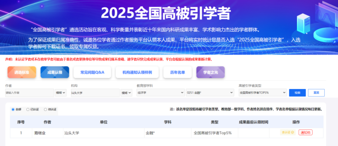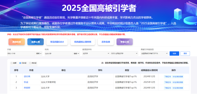 近日,中国知网下属的中国科学文献计量评价研究中心基于中国知网收录的国内学术成果,发布“2025全国高被引学者”名单,旨在客观、科学衡量并表彰近十年来国内科研成果丰富、学术影响力杰出的学者群体。