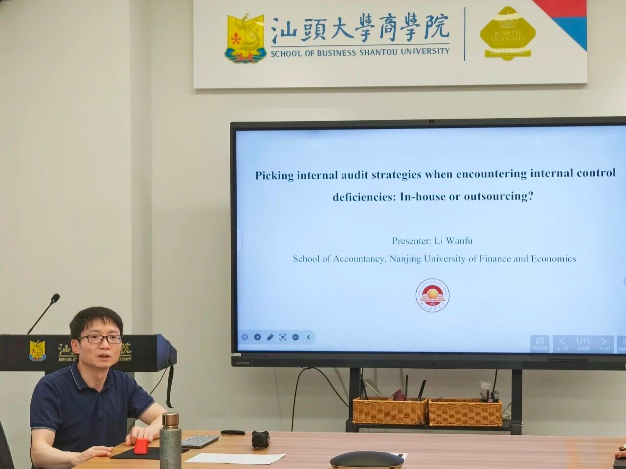 2025年6月6日,双周学术讲座(2025年第2期)在东海岸校区行政楼230研讨室顺利开展。本次讲座邀请了南京财经大学会计学院李万福教授担任主讲嘉宾,开展了题为《Picking internal audit strategies when encountering internal control deficiencies: In-house or outsourcing?》的专题讲座。讲座由会计与财务系负责人陈文川主持。会计与财务系教师及研究生参加了此次讲座。