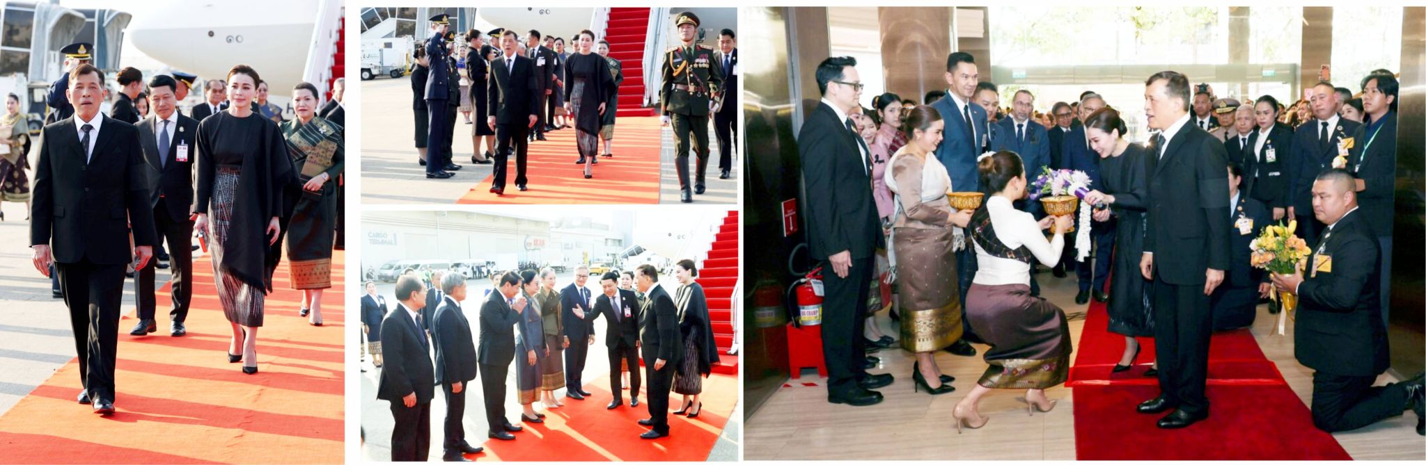 皇室专机抵达老挝首都万象的瓦岱国际机场时,老挝副总理及夫人、国家主席办公厅部长、万象市市长、外交部长(老方礼宾部长)及其夫人、老挝驻泰国大使,以及泰国驻万象大使等在机场恭候迎接。