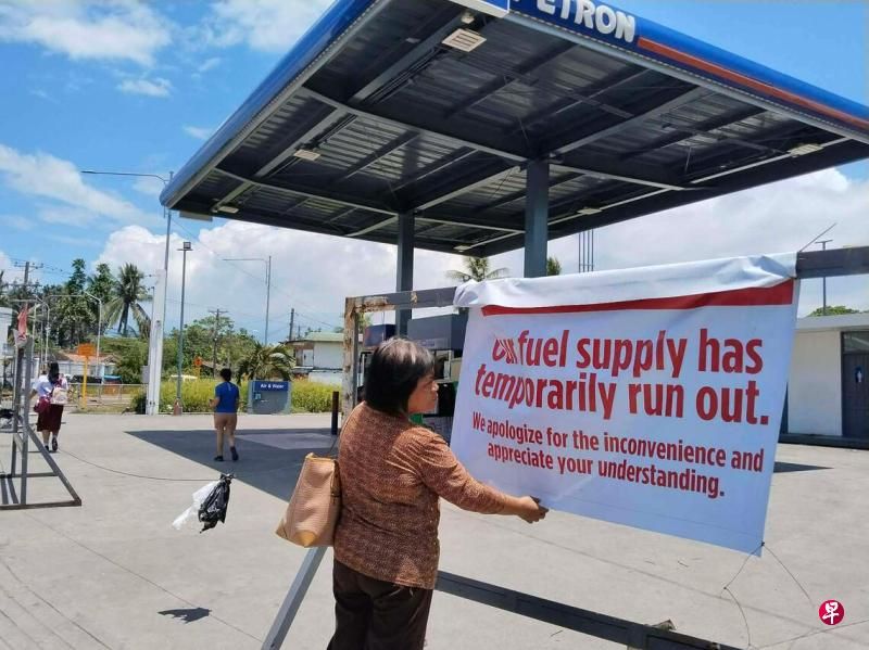 菲律宾中部莱特省塔克洛班市一家佩特龙油站贴出告示,说明各种燃油已售罄。佩特龙供应菲律宾约三成的燃油需求。