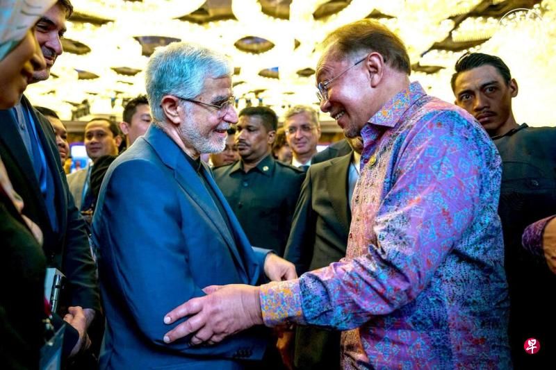 伊朗(4月7日)批准马来西亚船只通过霍尔木兹海峡后,马国首相安华(右)当天在吉隆坡出席“2026年吉隆坡与安卡拉对话会”活动时,向伊朗驻马国大使瓦里奥拉致谢。