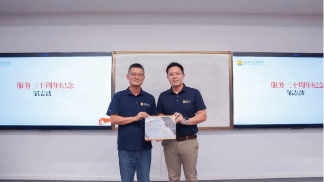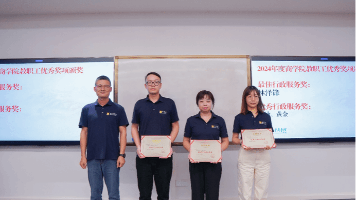 为表彰先进,带动教师以榜样为镜、积极进取、互相学习,推动学院建设与发展,学院评选出商学院2024年度教职工年度奖项获奖名单,并为服务满十周年、二十周年、三十周年的教职工颁发纪念牌匾。