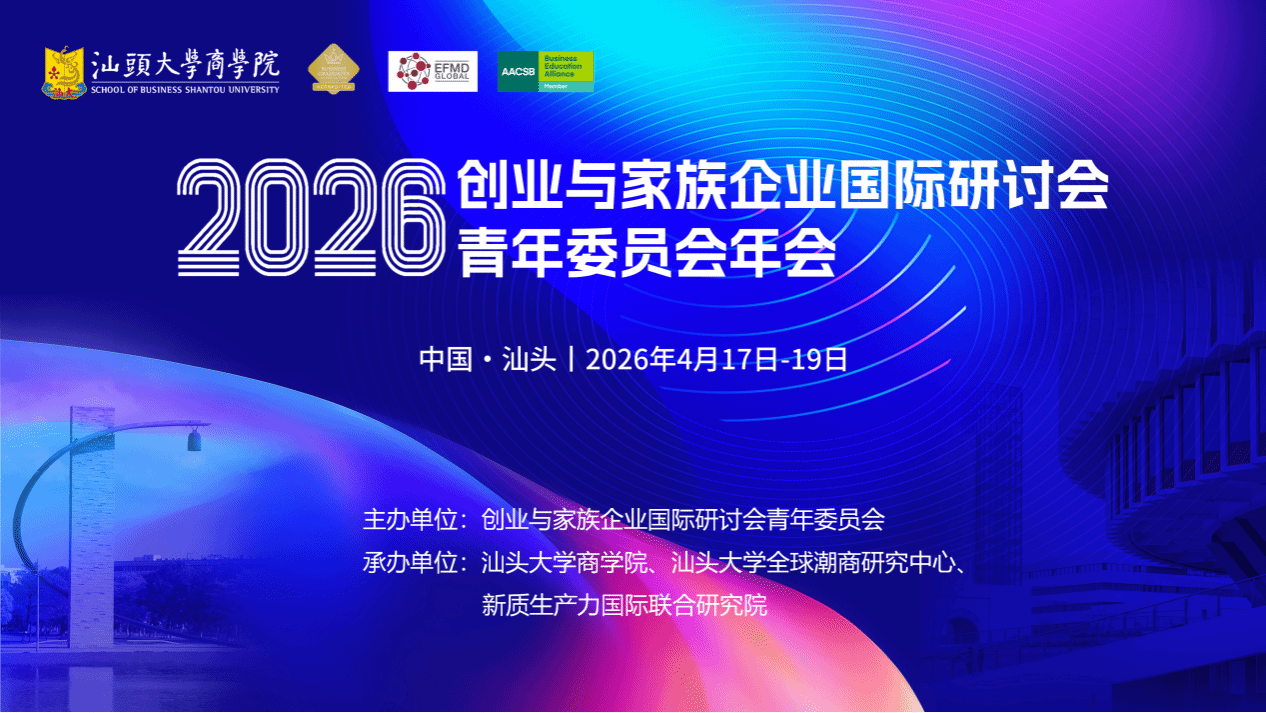 2026年4月18日,2026年创业与家族企业国际研讨会青年委员会年会在汕头市成功举办。本次会议由创业与家族企业国际研讨会青年委员会主办,汕头大学商学院、汕头大学全球潮商研究中心、汕头大学新质生产力国际联合研究院共同承办。来自国内多所知名高校的青年学者与专家齐聚一堂,共商发展。会议由浙江大学管理学院企业家学院副院长、全球创业研究中心副主任窦军生教授主持。